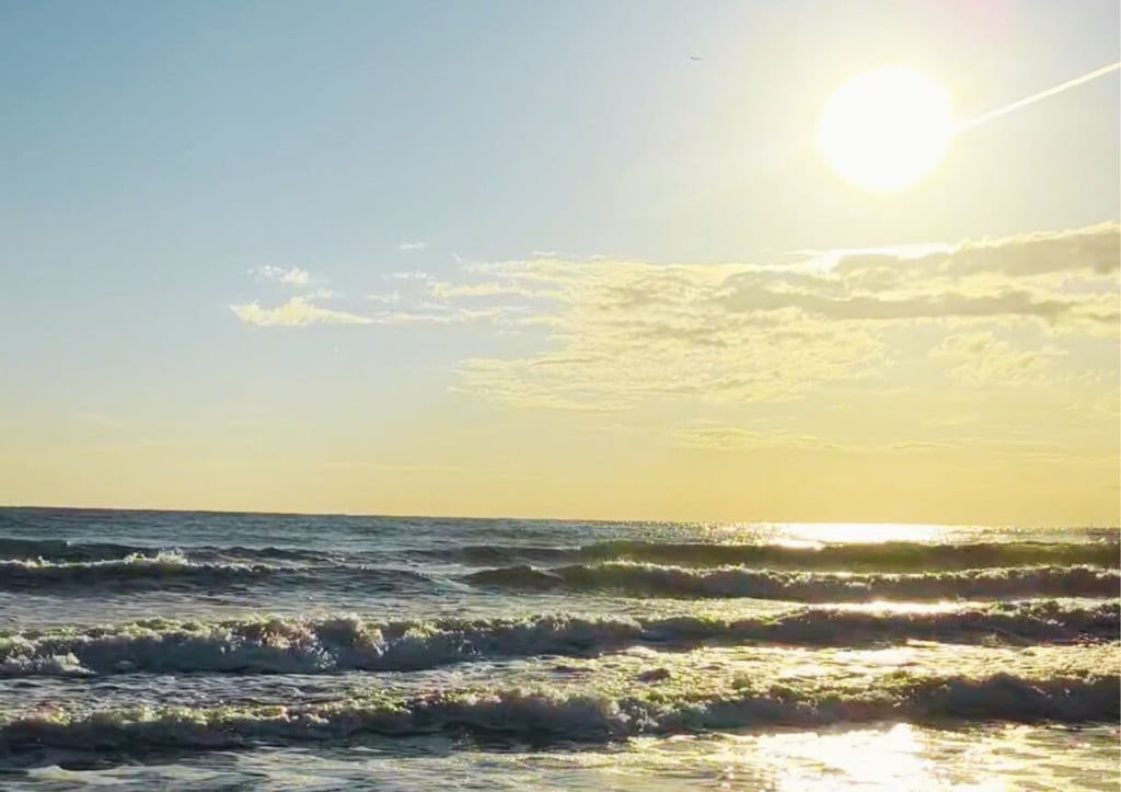 Me encanta cantar Gāyatrīmantra con mis pies en el mar mirando al sol que amanece.